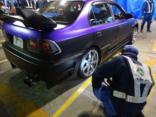 その結果、計5台(うち軽自動車1台)の車両を検査し、回転部分の突出、最低地上高の不足、騒音基準を満たさないマフラーの取付け等の不正改造があった5台全てに対し、道路運送車両法に基づき、東京運輸支局より整備命令書を交付しました。