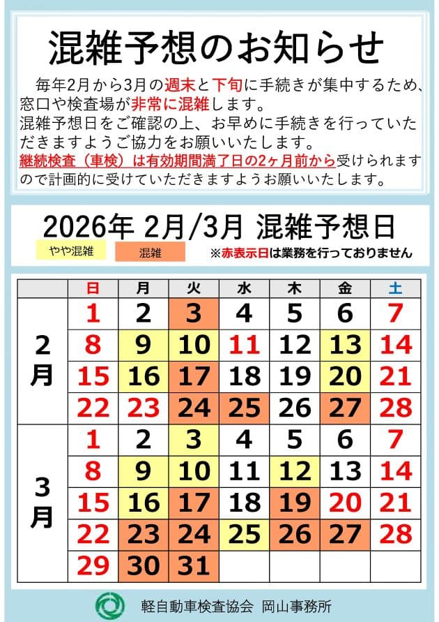 県道162号線(旧:国道2号線)を倉敷方面に、<久米>交差点を右折し、すぐに左側の側道へ進入、<軽自動車検査場左へ進行>の誘導案内により左折して100mのところ。