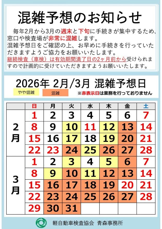 土曜日・日曜日・祝日・12/29 ~ 1/3